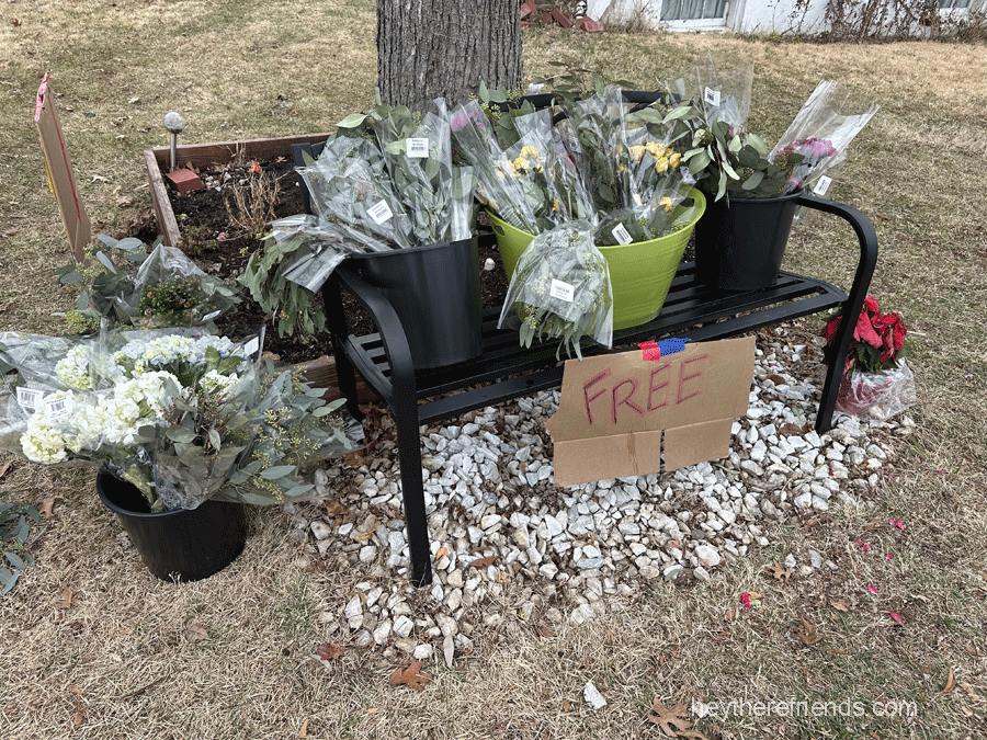 Fast forward to today. I ran home for lunch, but noticed two little girls with buckets of flowers set up on a bench in their front yard. Thinking this was a twist on a lemonade stand, I pulled over to buy a bundle. Much to my surprise, however, these flowers weren’t for sale. They were free.