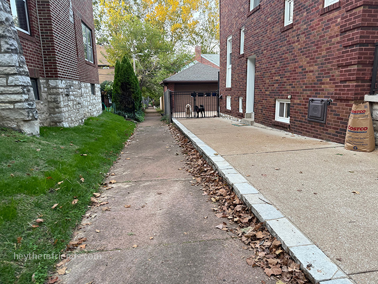 Now, after several months, tails wag at the sight of us and when they recognize my voice from across the street. Now, wiggly, curly, slobbery puppies cram into the fence corner, pressing their faces into the bars, offering their heads for scratches. I sit on the curb and tell them how wonderful they look after a fresh grooming and ask about their days. After a few minutes, I wish them a good evening and tell them I’ll see them again soon. They get one last scratch, they sniff at Finnegan, and we head on our way. It’s the highlight of my walk.