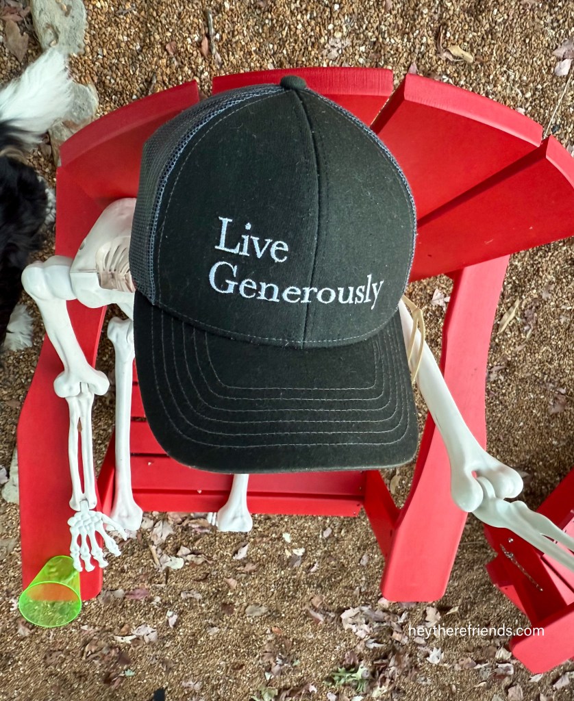 This skeleton is part of a Halloween display in our neighborhood — and his hat made me laugh. But it also made me think. A skeleton giving life advice….
